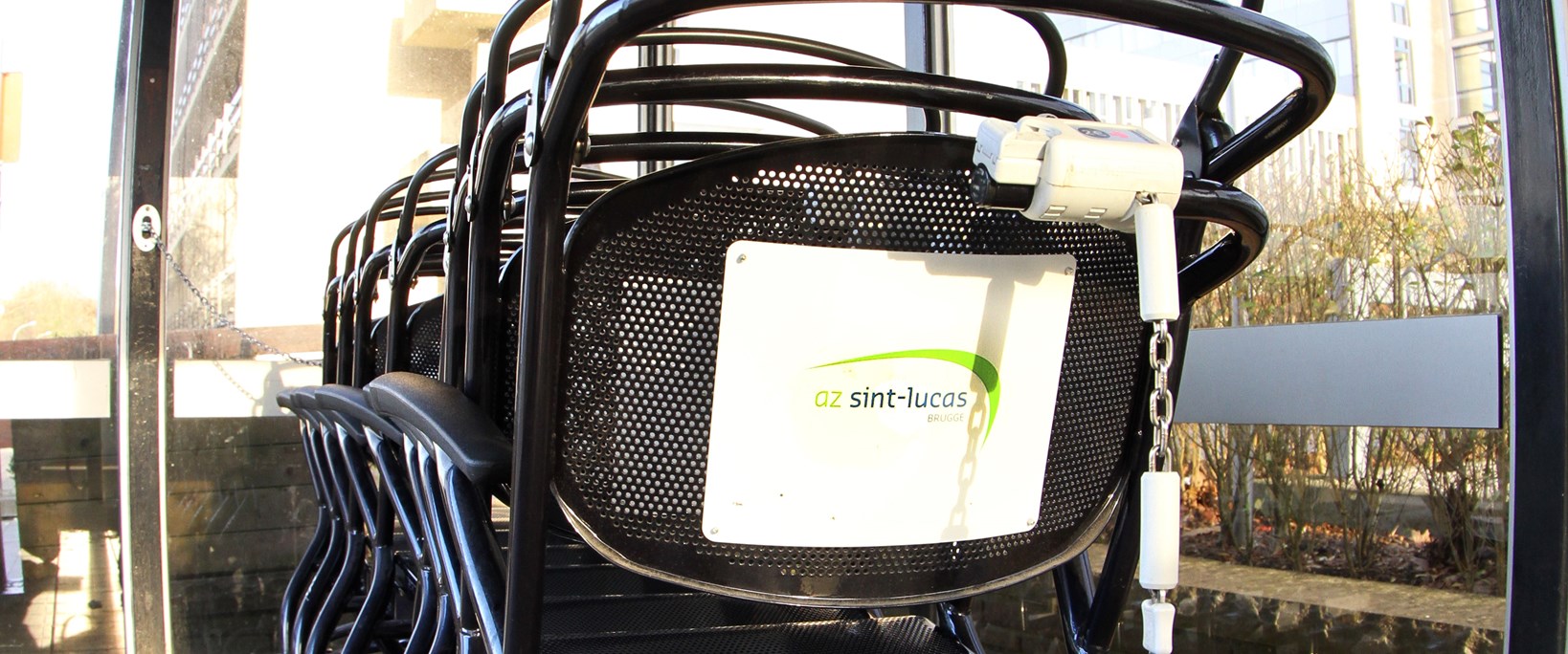In de parkeertoren staan rolwagens ter beschikking. Met een muntstuk van 2 euro kan je het slot ontgrendelen.