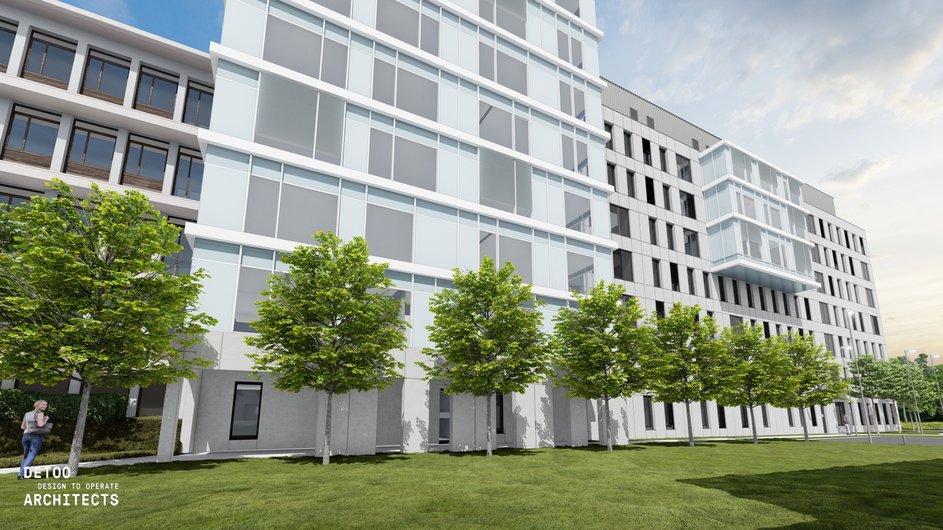 Bij het ontwerp en de bouw van het E-blok ligt de focus op energie-efficiëntie en duurzaamheid. Het gebouw maakt gebruik van warmtepompen en wordt uitgerust met zonnepanelen.